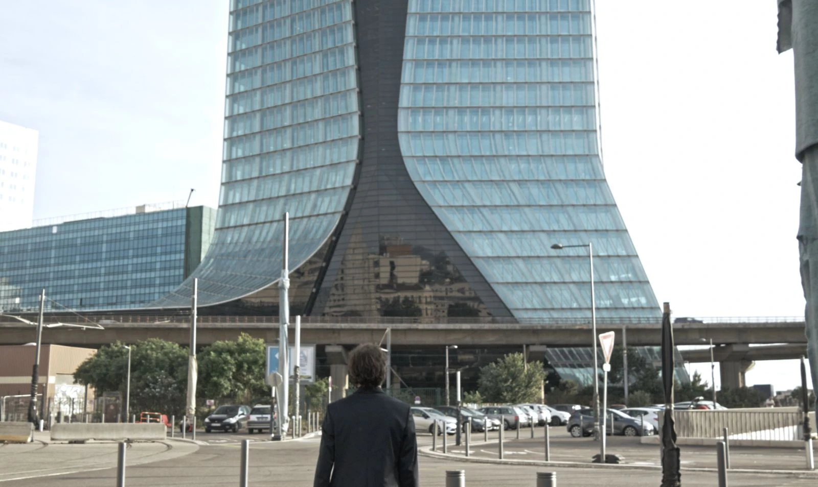 résumé : Un homme en costume qui se rend tous les jours dans une tour tel un automate, un sans-abri qui rôde aux alentours et la folie qui guette…